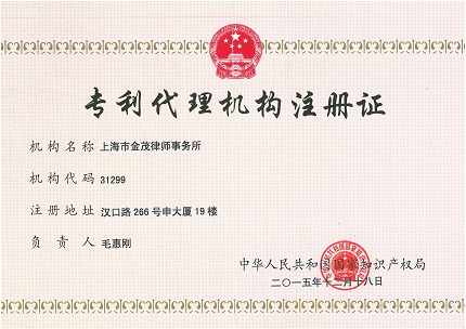 2015年12月31日,根据中华专利代理人协会系统显示,上海市金茂律师事务所于本年度12月份正式获得专利代理机构资质,成为沪上二十余家同时拥有专利代理机构资质的双证律所之一。