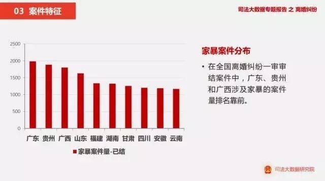 有点出乎意料的是,我国南方部分地区的家暴指数居于前列。一般认为北方大男子主义传统比较强,有“三天不打,上房揭瓦”的说法,可能也是出于刻板印象。现在司法数据表明,广东、贵州、广西的家暴指数较高,需要当地的法律共同体成员们作更多的努力哦。