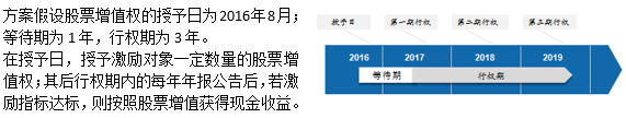 • 激励对象只参照股价增值的金额取得现金收入,无需承担购股成本。